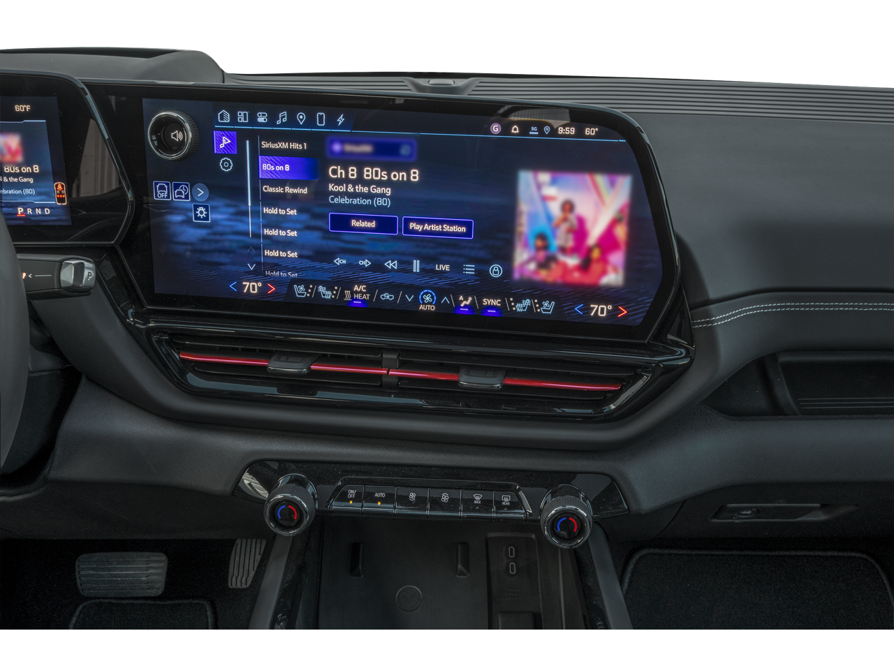 - Air conditioning, dual-zone automatic climate control