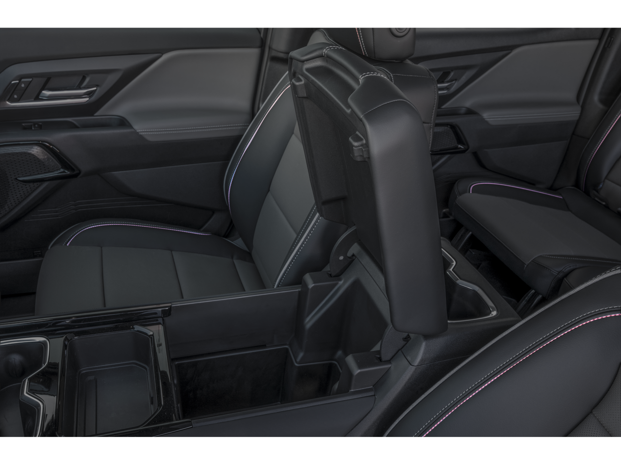 - Console, floor-mounted with lid 4 cup holders, front 2 are sliding, type-C USB ports, Auxiliary and 120V Power Outlets