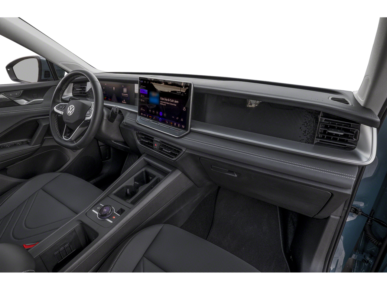 - MIB4 Composition Media Touchscreen w/AM/FM Radio -inc: WMA/MP3/FLAC player w/USB, 12.9" touchscreen multi-function center display w/backlit sliders, voice control, 6 speakers + center speaker (7 speakers total) sound system, capability for in-vehicle 4G LTE enabled Wi-Fi (cellular data plan required; includes limited trial), capability for connected vehicle services (capabilities for services vary; requires enrollment or subscription), Bluetooth® connectivity (for compatible devices), SiriusXM w/360L (w/3-month free trial subscription; 360L services require acceptance of Car-Net terms), App-Connect smartphone integration (w/Apple CarPlay, Android Auto and MirrorLink) via USB, wireless App-Connect smartphone integration (for compatible devices) w/multi-phone pairing capability, 45W fast charging (for compatible mobile phones and accessories) via USB in both rows and Qi wireless inductive charger, cooled, up to 15W (for compatible mobile phones and accessories) All connected vehicle services are subject to terms and limitations. Some services require a paid subscription. See dealer or vw.com/connected for important details.